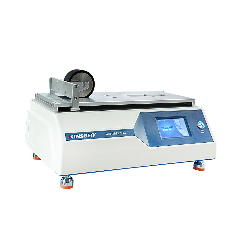 電動碾壓滾輪用于膠粘帶剝離強度、持粘性等試驗用試件的制備。以固定的壓力及速度,將膠粘帶試樣規范平整,均勻的粘著于標準的試驗基材上。